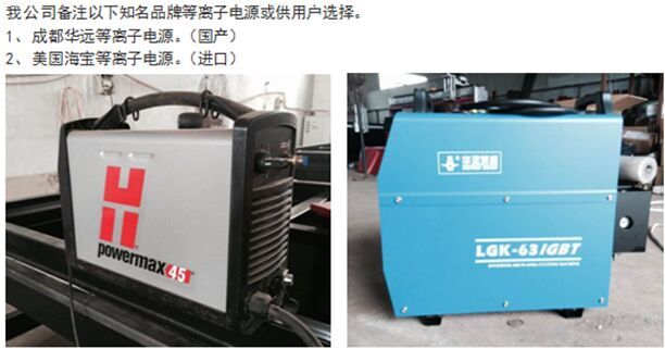 9)標配華遠63A等離子電源(可選配美國海寶45A、65A、105切割效果更佳)。